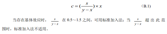 4.2 當(dāng)樣品基體成分復(fù)雜或者不明時(shí),或加標(biāo)回收率超過本方法質(zhì)控要求范圍時(shí),應(yīng)采用標(biāo)準(zhǔn)加入法進(jìn)行試樣測定并計(jì)算結(jié)果,參見附錄A。