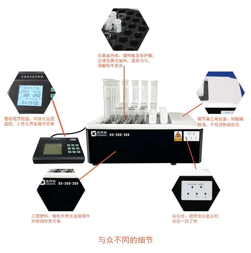 DS-360-36X線控石墨消解儀(36位)主要用于實驗室樣品前處理中進行加熱、趕酸、消解的設(shè)備,比實驗電熱板效率高、成本消耗低,石墨消解儀采用高純石墨作為加熱體,包裹式加熱,溫度均勻充分消解樣品。多孔的設(shè)計,輕松實現(xiàn)了批量的處理樣品,拋棄傳統(tǒng)單一的消解模式,是您樣品消解的必備實驗室裝備之一。