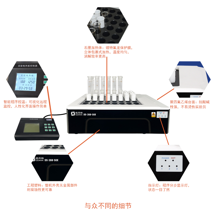 DS-360-56X線控石墨消解儀擁有可以遠程控制技術,讓操作者遠離實驗樣品加熱、消解、趕酸時產生的酸霧,從而讓操作者不會受到直接的傷害,是個綠色化的產品。