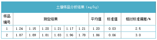 在萬分之一電子天平上準確稱取已制備的土壤樣品0.2g (精確至0.1mg)于50ml聚四氟乙烯坩堝中,用少量水潤濕,加入10ml鹽酸、5ml 硝酸、5ml 氫氟酸、3ml高氯酸,搖勻,靜置8小時,待有機物揮發完后,加蓋放在陶瓷電熱板上于235℃加熱消解,待坩堝中黑色有機碳化物分解,溶液呈透明澄清狀后,開蓋,繼續加熱至冒濃厚白煙且內容物呈不流動狀態時,取下坩堝,稍冷,加入1ml 1+1硝酸溶液溶解殘渣,轉移至50ml容量瓶中定容,待測。同時做空白試驗。